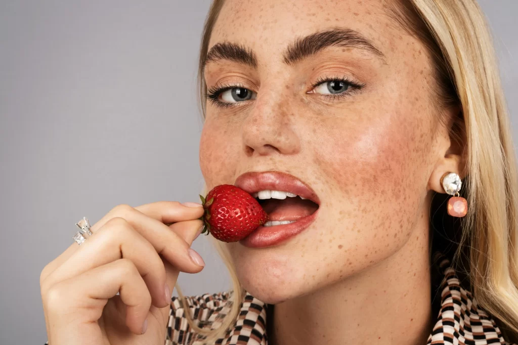 Mas, não é só isso! A vitamina C também tem o poder de clarear manchas e melhorar o tom da pele. Imagine só, sua pele radiante e sem manchas! As frutas cítricas ajudam a reduzir a aparência de rugas e linhas finas. Agora, não seria maravilhoso começar o dia com um suco fresco de laranja ou morango, não é?