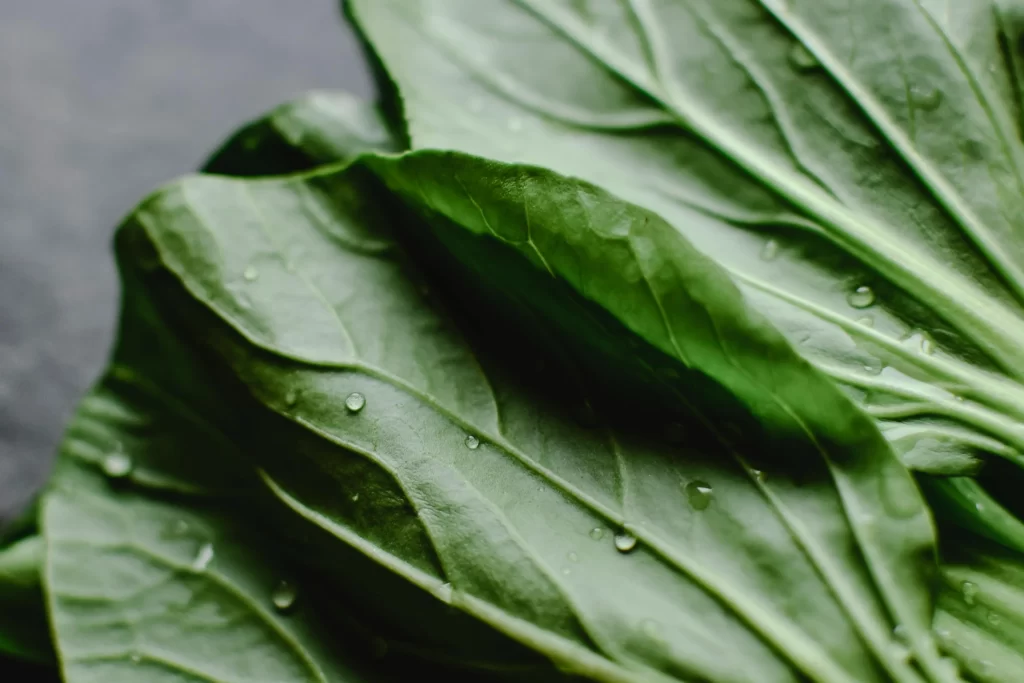 Folhas verdes, como espinafre, couve e alface, são alimentos supernutritivos para a pele. Elas são carregadas de vitamina A, que ajuda na renovação celular e na produção de colágeno. Elas também são ricas em antioxidantes, ferro e magnésio, fundamentais para manter a pele saudável e sem inflamações.