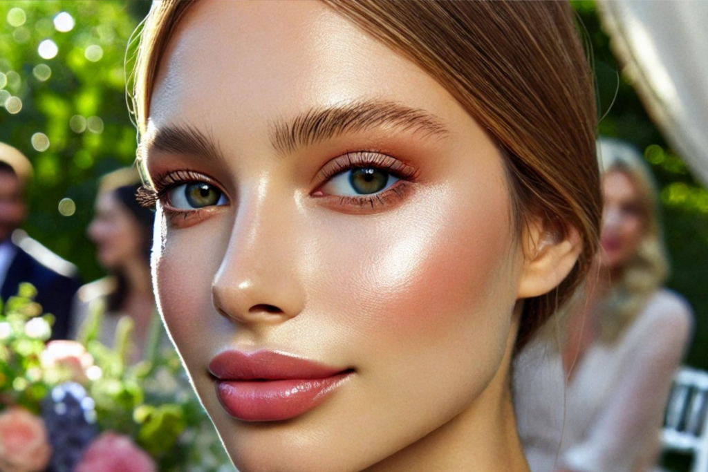 - Efeito Glow: Iluminadores estrategicamente aplicados para criar um brilho sofisticado. O segredo está na aplicação nos pontos altos do rosto, como têmporas, ponte do nariz e arco do cupido.